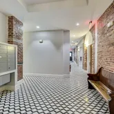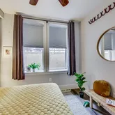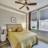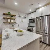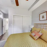 The unit is designed for easy living, including a large storage closet with custom organizers and an in-unit washer/dryer. The spa-like luxury bathroom impresses with marble countertops and floor-to-ceiling subway tile in the shower. The sizable bedroom is a serene retreat, complete with custom-organized closet space and two large windows.