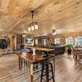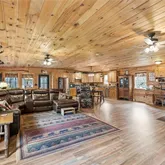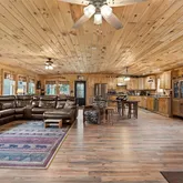 - Interior Features: Ceiling Fans, Eat In Kitchen, Separate Formal Living Room, Kitchen Island, Kitchen Family Room Combo, Living Dining Room, Pantry, Sliding Glass Doors, Natural Woodwork, Bedroom On Main Level