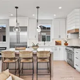 Step inside and experience the harmonious flow of hardwood floors, accentuated by the soft glow of chandeliers and recessed lighting. The open-concept kitchen is a chef’s paradise, featuring a sleek modern island, premium Thermador appliances, and a bespoke range hood, setting the stage for culinary creativity and dining enjoyment.