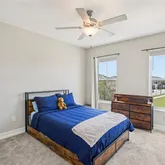Head upstairs and you’ll find a generous loft — perfect for movie nights, game days, or simply relaxing. This level also includes the laundry room, the primary suite, and three additional bedrooms, each with access to their own bath. The primary suite is truly special with space for a sitting area, office, or workout corner. Its spa-like bathroom includes a glass shower, soaking tub, dual sinks, a private water closet, and large windows overlooking the lake. The walk-in closet is smartly placed just beyond the bathroom for extra privacy. Two upstairs bedrooms even feature their own en suite baths with double closets, making this a home where everyone has their own retreat.