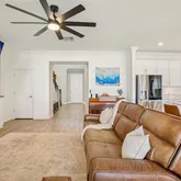 - Interior Features: Ceiling Fan(s), Crown Molding, Eating Space In Kitchen, High Ceilings, In Wall Pest System, Kitchen/Family Room Combo, Open Floorplan, PrimaryBedroom Upstairs, Thermostat, Walk-In Closet(s)
