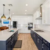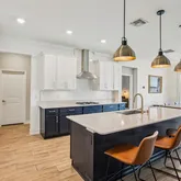 Inside, the foyer greets you with soaring ceilings, tile flooring on the main level, soft carpet upstairs, and crown molding for added charm. The kitchen is a showstopper with custom two-tone cabinetry, a massive island with seating for four, quartz countertops, a new GE Café dishwasher, GE combination washer/dryer, a new LG refrigerator, and more cabinet space than you’ll know what to do with. A new whole-house water softener has been installed for your convenience, as well. Tucked between the kitchen and garage, you’ll also find a handy coffee/mail nook and a huge walk-in pantry.