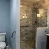 Primary Bedroom Ensuite: King bed, 65" Smart TV, walk-in shower (no tub)