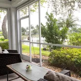Expansive screened-in lanai with serene lake and fountain views, ideal for morning coffee, those evening cocktails and taking in the one-of-a-kind SW Florida sunsets