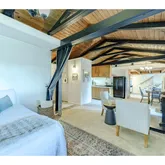 - Living Room Features: Beamed Ceilings, Deck