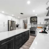 - Kitchen Features: Breakfast Bar, Cabinets White, Eat-in Kitchen, Kitchen Island, Pantry Walk-In, Stone Counters, View to Family Room