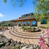 Stone pavers extend from the south entry in an extraordinary design that complements the surrounding landscape. This sanctuary is the perfect place to take in the views of Anacapa Island and the mountain peaks above.