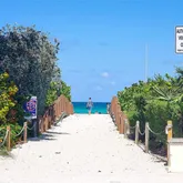 dryer in the building. The community offers security cameras, a stylish resident lounge, a lush backyard, and serene landscaping. Prime location—one block...Nicely renovated 1-bedroom garden-view apartment in a tropical, gated building just steps from the beach. This charming residence features central A/C, PVC wood-toned laminate