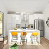 - Kitchen Features: Breakfast Bar, Cabinets White, Stone Counters, View to Family Room