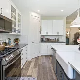 - Kitchen Features: Breakfast Bar, Cabinets White, Kitchen Island, Pantry Walk-In, Solid Surface Counters, View to Family Room
