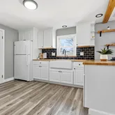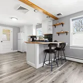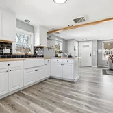 - Kitchen Features: Beamed Ceilings,Flooring - Vinyl,Window(s) - Bay/Bow/Box,Countertops - Upgraded,Kitchen Island,Breakfast Bar / Nook,Exterior Access,Open Floorplan,Gas Stove