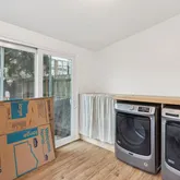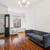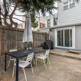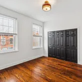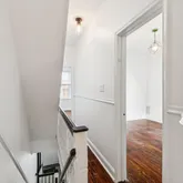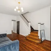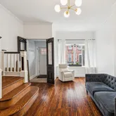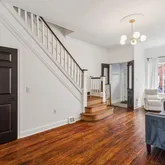 Step inside to discover original hardwood floors, high ceilings, and beautifully preserved wooden railings complemented by new trim. The renovated kitchen is bathed in natural light, thanks to the many side windows, and features high-end appliances, including a new refrigerator, dishwasher, and washer/dryer. The first floor also includes a newly added half bath, central air, and additional window units on the top floor for extra ventilation.