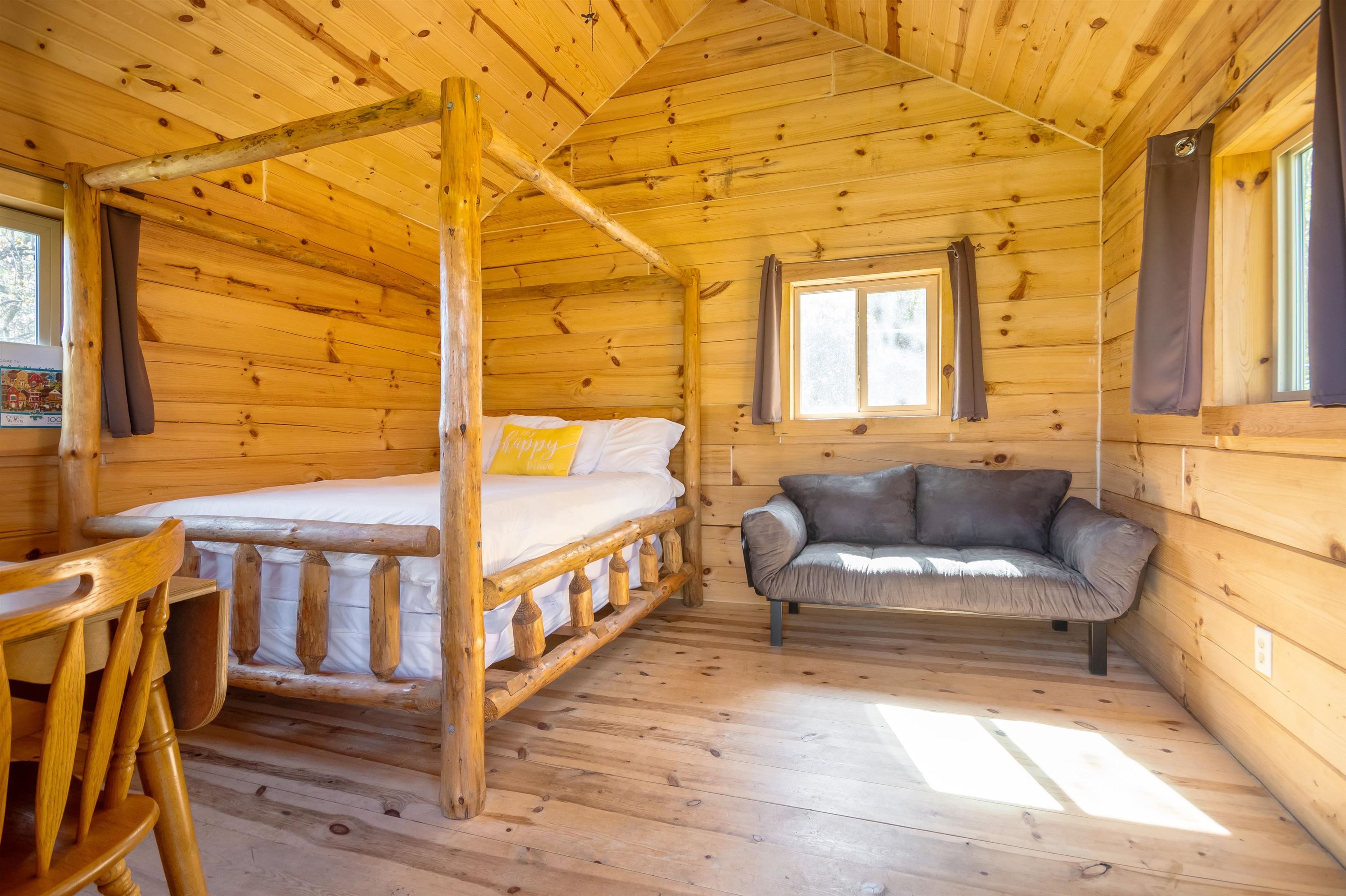 - Items Included: Mini refrigerator, outdoor kitchenette, all furnished cabin items, outhouse