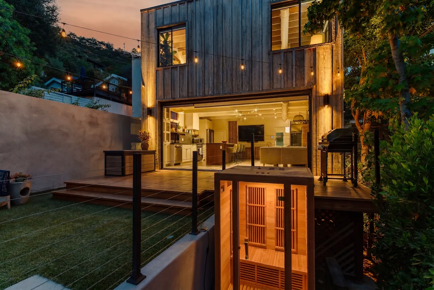 The spacious primary suite serves as a private retreat, offering tranquil canyon vistas and a sense of calm. Outdoors, curated spaces elevate the lifestyle offering with a sauna and cold plunge, perfect for relaxation and wellness. Additional features include a detached garage and central A/C and heat. Ideally located just moments from the Canyon Country Mart and within the highly regarded Wonderland Elementary School District, this is a rare opportunity to own a turnkey retreat in one of Laurel Canyon’s most desirable enclaves.