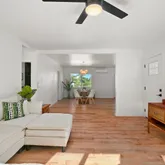 Light-filled single-level floor plan with a huge living room cooled by a powerful new split-system AC that effortlessly keeps the entire main living area comfortable. Open chef’s kitchen featuring a large island, quartz counters, tons of soft-close cabinetry, and brand-new stainless steel appliance package. True split-bedroom design for ultimate privacy: