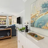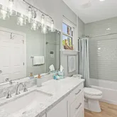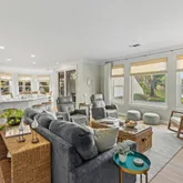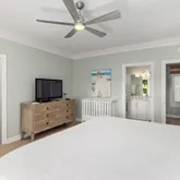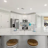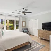 Every inch of the home has been beautifully updated. Recent improvements include fresh interior paint, elegant crown molding, custom shiplap accents, and new furnishings. The kitchen shines with new cabinets, quartz countertops, backsplash, farmhouse sink, and stainless-steel appliances. All bathrooms have been fully renovated with updated tile, fixtures, and quartz surfaces. Additional touches such as custom shelving in the owner's closet and new window treatments throughout complete the home's refreshed coastal look.