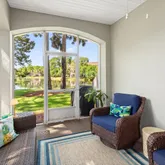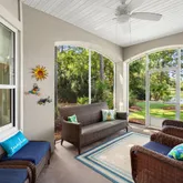 Enjoy relaxing mornings or peaceful evenings on the screened-in covered patio overlooking the lake, offering a perfect spot to take in the tranquil views.