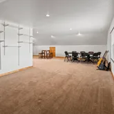 - Floor: Carpeting, Ceramic Tile, Stained Concrete