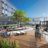 A lush rooftop garden with sweeping NYC views