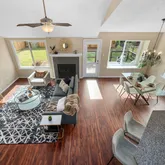 Step inside to a living room crowned with soaring cathedral ceilings that lift the entire space, drawing in natural light and giving the home an airy, open presence. Fresh interior paint, new carpet, updated light fixtures, and recessed can lighting create a clean, cohesive feel throughout. The kitchen features new appliances, and the fireplace has been professionally cleaned with the chimney swept, ready for evenings that begin with a spark and end in conversation.