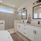 - Interior Features: Built-in Features, Ceiling Fan(s), Chandelier, Separate Formal Dining Room, Double Vanity, High Ceilings, Kitchen Island, Low Flow Plumbing Fixtures, Multiple Dining Areas, Main Level Master, No Interior Steps, Open Floorplan, Pantry, Quartz Counters, Recessed Lighting, Storage, Soaking Tub, Smart Thermostat, Walk In Closets, High Speed Internet