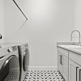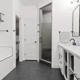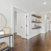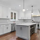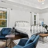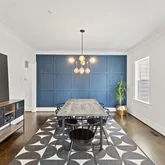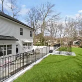 The open floor plan is spacious and inviting, with hardwood floors, natural lighting, and 10-foot ceilings throughout the kitchen, dining, and main living areas. The chef's kitchen features granite countertops, a center island, stainless steel appliances,...This beautiful, newly-built home stretches to almost 5,000 square feet of living space across three floors, featuring five bedrooms, four full bathrooms, and one half bathroom. There is a tree line in between Seven Locks and the home to allow for privacy.