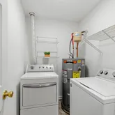 Upstairs, two comfortable bedrooms share a full bath, while a convenient laundry room (washer and dryer included) makes daily life simple.