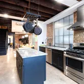 - Room Features: Island, Countertop(s) - Granite, Kitchen - Gas Cooking, Flooring - Concrete, Lighting - Recessed, Dining Area