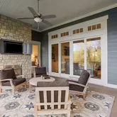 - Construction Materials: Board & Batten Siding, Stone Trim