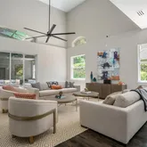 Welcome to a stunningly reimagined estate in the highly sought-after Palm Lake gated community—an exclusive enclave of just 39 luxury homes in one of Orlando’s most prestigious neighborhoods. This move-in ready, 5-bedroom, 5.5-bathroom estate with a spacious upstairs bonus room offers over-the-top elegance and comfort. From the moment you arrive, you’re greeted by immaculate curb appeal—lush, manicured landscaping, a stately paver driveway, and an inviting façade that sets the tone for what lies within. Step inside the grand foyer and be instantly impressed by luxury flooring, a designer chandelier, and seamless sightlines that draw you into the heart of the home. The formal living room features uninterrupted views of the resort-style pool, while the elegant dining room and private home office are adorned with custom lighting and refined finishes—ideal for entertaining or working in style. The chef-inspired kitchen is the ultimate culinary space, boasting premium KitchenAid appliances, including a double convection oven, induction cooktop, and built-in ice maker. The adjoining family room is bathed in natural light, thanks to soaring transom windows that create a bright and welcoming atmosphere. Retreat to the first-floor primary suite, a peaceful sanctuary featuring dual walk-in closets and a luxurious, spa-like bathroom with a soaking tub, oversized walk-in shower, dual vanities, and a show-stopping chandelier. Upstairs, a cozy loft leads to a huge bonus room, pre-wired for surround sound and projector—perfect for your future home theater or game room. Four additional bedrooms, each with access to beautifully appointed bathrooms, provide plenty of space for family or guests. Outside, the screen-enclosed pool area is your private resort. Enjoy the cascading waterfall, elegant stonework, and multiple lounge areas designed for relaxing or hosting unforgettable gatherings. Modern smart features—including a Nest thermostat, Cat-5-E wiring, strategically placed access points, Ring video doorbell, security camera system, and a new 2020 pool pump—ensure this home is as functional as it is beautiful. Thoughtfully upgraded by the original owners, this residence seamlessly blends timeless elegance with Calabasas-inspired luxury, offering a unique lifestyle opportunity in one of Orlando’s most exclusive zip codes. Don’t miss your chance to own this rare gem—where every detail has been curated for those who demand the very best.