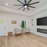 - Interior: Ceiling TrayCofferd, Fireplace, Floor Vinyl, Lighting Recessed, Pantry, Split Bedroom, WasherDryer Hookup