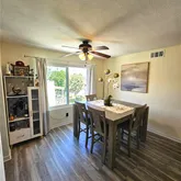 Welcome to this beautifully updated 2-bedroom, 1-bathroom top-floor corner condominium offering 895 sq. ft. of stylish and comfortable living space. Perfectly positioned for added privacy, this charming home showcases stunning mountain views and an abundance of natural light. Step inside to discover luxury vinyl plank (LVP) flooring, fresh interior paint, and a tastefully remodeled bathroom with modern finishes. The home also features recently upgraded energy-efficient double-pane windows throughout, enhancing both comfort and efficiency. The open-concept floor plan seamlessly connects the spacious living room, dining area, and kitchen—ideal for everyday living or entertaining guests. Enjoy the convenience of in-unit laundry, while one of the bedrooms offers a walk-in closet and elegant French doors leading to a private balcony—your perfect spot to relax and take in the scenic views. This unit includes a highly sought-after private 2-car garage, central air and heat, and access to gated community amenities such as a sparkling pool. HOA Upgrades Add Tremendous Value: