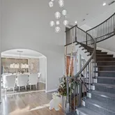 - Room Description: A 14' x 17' grand foyer with a 19-ft ceiling leads into an elegant great room with open flow and walls of windows.