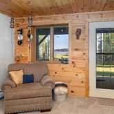 - RoomDescription: Deck door with view of lake Main floor and primary shared bath.