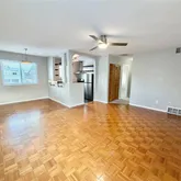 Flooring: The living and dining rooms have wood floors, and the hallway and bedrooms have carpet. Heating/Cooling: Central heat, no AC. Exterior Details