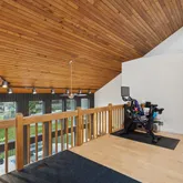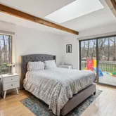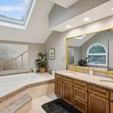 Ascend the dramatic staircase to find beautifully appointed bedrooms with ample closet space, serviced by a spacious hall bathroom renovated in 2021. The primary suite offers a vaulted ceiling, balcony, and a luxurious bathroom featuring a jacuzzi tub, glass shower, and dual sinks. A loft space awaits, offering endless possibilities for recreation or relaxation, including play area, work out space, reading nook, or additional office.