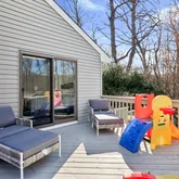For formal gatherings, the generously sized dining room awaits, while practical elements like a large pantry, mudroom with custom cabinetry, and first-floor laundry room ensure both style and functionality. Down the hall, discover a modern home office with built-in shelving, making remote work a breeze, along with a first-floor bedroom and newly renovated bathroom, catering to every lifestyle need.