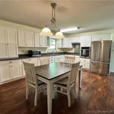 stainless-steel appliances and eating area. The kitchen flows seamlessly into the bright living room which features a gas