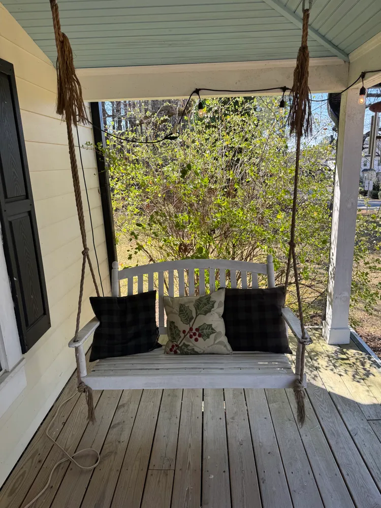 Surrounded by pecan trees and featuring a weeping cherry blossom at the front façade, the house offers a spacious, private backyard and a screened-in porch, ideal for enjoying the outdoors in comfort.