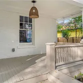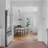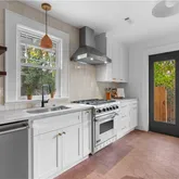 Renovated top to bottom, this bungalow blends history and modern living with effortless grace. The living room welcomes you with a decorative brick fireplace, hardwood floors, and period details that root the home in its century-old soul. A bright, cheerful kitchen where a Southern California Palm Springs pink-tiled floor adds a pop of joy. Vertical Subway tile backsplash and top-of-the-line stainless appliances make cooking a delight.