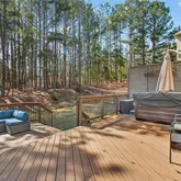 Welcome to 8840 Appling Ridge — an exceptional 6-bedroom, 4-bathroom executive home nestled in a quiet cul-de-sac within the prestigious Arden Greens section of Windermere. Boasting nearly 5,000 sq ft across three beautifully finished levels, this home delivers luxury, comfort, and peace of mind from day one. A rare northeast-facing orientation floods the home with natural light and positive energy throughout the day. Major recent upgrades include a brand new roof (November 2025), updated electrical with smart lighting and switches throughout, central water purification, and whole-home fresh paint. The stunning renovated kitchen features bold navy blue cabinetry with gold hardware, white quartz countertops, subway tile backsplash, center island, gas range, and stainless steel appliances. The owner's suite offers a spa-like bath with soaking tub, separate shower, his-and-hers closets, and radiant heated flooring. A versatile bonus room with electrical and plumbing connections is ready to become a bathroom, walk-in closet, or flex space. The fully finished walkout basement impresses with tray ceilings, a built-in entertainment bar with mini fridge, a full bath, and multiple living zones. Outside, enjoy an expansive multi-level Trex deck, private hot tub, café string lights, and a serene wooded backdrop. Windermere residents enjoy world-class amenities including a championship golf course, aquatic center, fitness center, tennis courts, and more. Zoned for top-rated Forsyth County schools: Haw Creek Elementary | Lakeside Middle | South Forsyth High. This one checks every box — schedule your tour today!