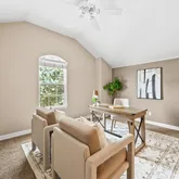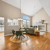 - Room Description: Hardwood flooring, vaulted ceiling, gas fireplace, built-ins, ceiling fan, coat closet, dining area
