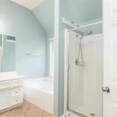 - Interior Features: High Ceilings, Pantry, Solid Surface Counters, Soaking Tub, Separate Shower, Ceiling Fans, Kitchen/Dining Combo, Living/Dining Combo, Programmable Thermostat