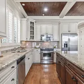 - Interior: Beamed Ceilings, Bookcases, Double Vanity, High Ceilings, Pulldown Attic Stairs, Separate Shower, Soaking Tub, Tray Ceiling(s), Walk-In Closet(s)