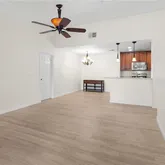- Interior Features: Ceiling Fan(s), Living Room/Dining Room Combo, Open Floorplan, Solid Wood Cabinets, Stone Counters, Thermostat, Walk-In Closet(s), Window Treatments