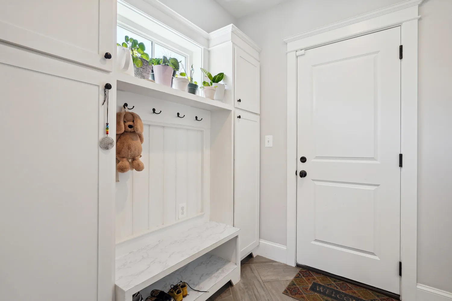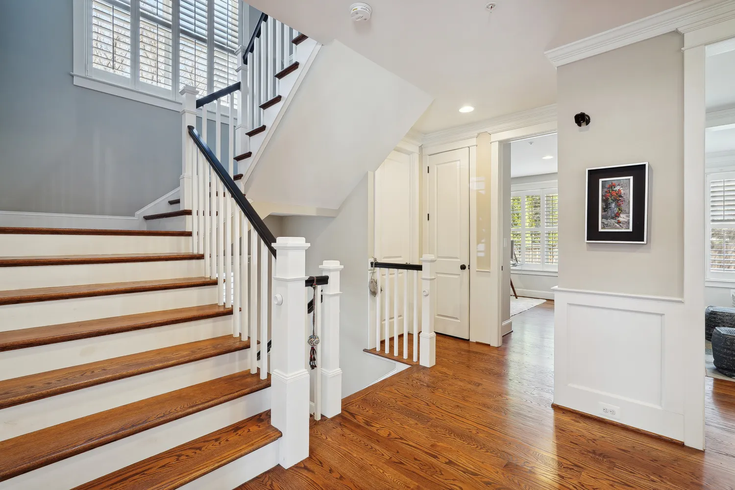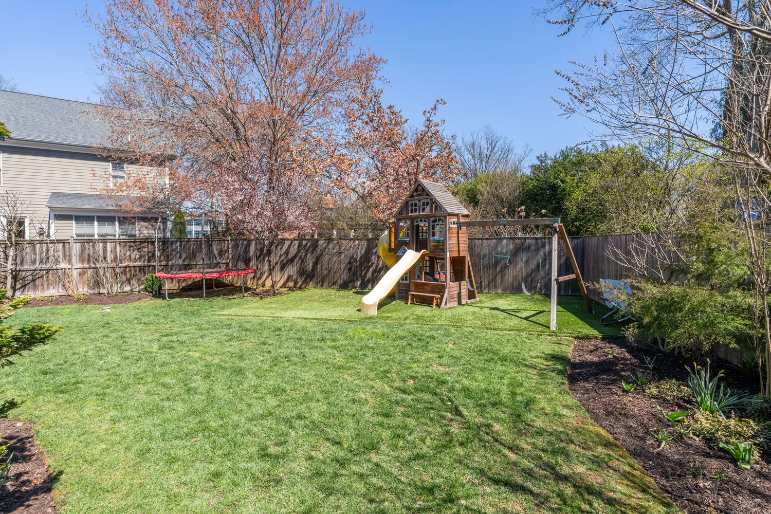 Outside, the rear deck overlooks a fully fenced landscaped yard, creating the perfect space for outdoor entertaining. This home also features elegant molding, recessed lighting, mudroom with built-ins, a butler’s pantry, hardwood floors, marble kitchen counters, stainless steel appliances, solar panels and a security system.