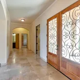 - Flooring: Hardwood, Travertine, Wood