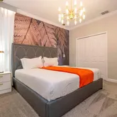 Step inside to discover a spacious, open-concept layout with high-end furnishings, a gourmet kitchen featuring 42” cabinetry, quartz countertops, and stainless steel appliances, and expansive living and dining areas perfect...Welcome to your dream retreat in Champions Gate, Florida—where luxury meets lifestyle. This fully furnished 6-bedroom, 5-bathroom pool home showcases over $100,000 in premium upgrades and designer finishes, offering the perfect blend of comfort, elegance, and resort-style living.
