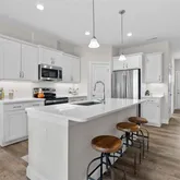 - Interior Features: Breakfast Bar, Ceiling Fan(s), Custom Cabinetry, Dining/Living Room Combo, Entrance Foyer, High Ceilings, Kitchen Island, Lever Faucets, Open Floorplan, Recessed Lighting, Shower, Solid Surface Countertop(s), Tub, Walk-In Closet(s), Walk-In Pantry