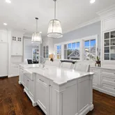 - Kitchen: Floor - Wood, Dec Molding, Marble, Breakfast Cntr, Pantry, Eat-In, Center Island, Butler Pantry